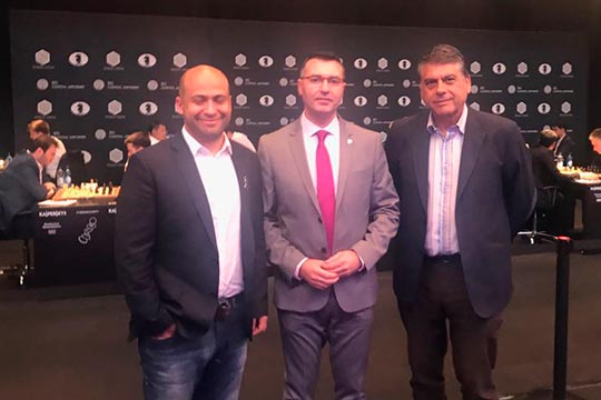 Ilya Merenzon, CEO de la World Chess etuvo con el presidente de la Federación Española de Ajedrez, Javier Ochoa, y el orgaizador de la prueba de Palma de Mallorca, Sebastià Nadal, para ultimar los detalles de este importante evento..